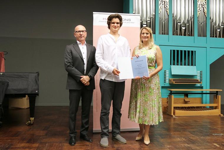 Jack Dauner, Klavier (Altersgruppe IIIplus, mit97 von 100 Punkten), vom Joseph Haydn Konservatorium. Stipendium: 500 Euro