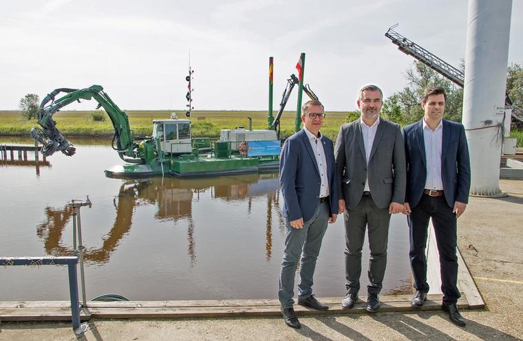 Infrastrukturlandesrat Heinrich Dorner und Seemanagement-Geschäftsführer Erich Gebhardt zogen am 29. April in Oggau eine erfolgreiche Bilanz der Maßnahmen, die von der 2022 gegründeten Seemanagement Burgenland GmbH in der ersten Saison im Eigenbetrieb von Oktober 2023 bis April 2024 durchgeführt wurden. Insgesamt wurden rund 60.000 Kubikmeter Weichschlamm abgepumpt und zahlreiche Schilfkanäle ertüchtigt. „Nach der Generalprobe im Zuge des Pilotprojekts ist nun auch die Premiere im Eigenbetrieb gelungen. Das Team rund um Seemanagement-Geschäftsführer Erich Gebhardt hat hervorragende Arbeit geleistet und sich als verlässlicher und kompetenter Partner der Gemeinden erwiesen“, zeigte sich Dorner zufrieden.