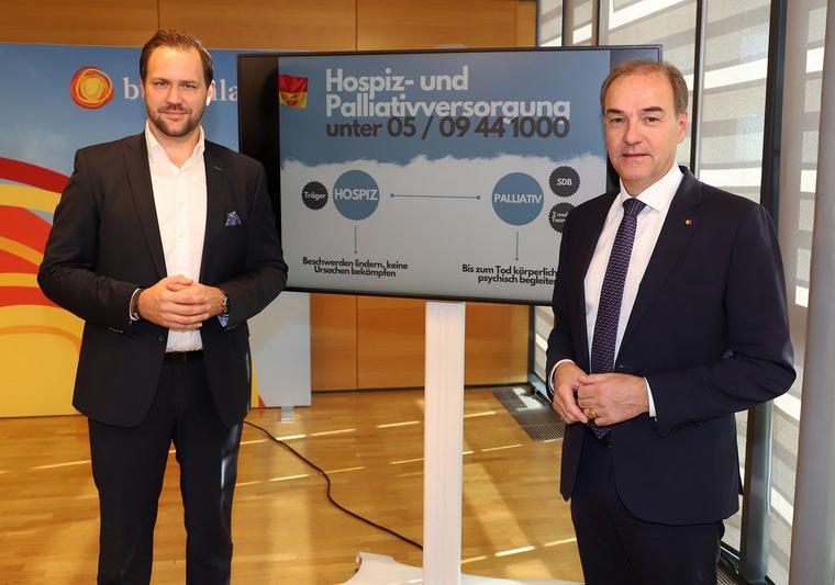 Anlässlich des bevorstehenden internationalen Hospiz- und Palliativtages zog Soziallandesrat Dr. Leonhard Schneemann gemeinsam mit dem Geschäftsführer der Sozialen Dienste Burgenland (SDB), Dr. Johannes Zsifkovits, Bilanz über die seit Jänner 2021 in die Sozialen Dienste Burgenland GmbH (SDB) eingegliederte Hospiz- und Palliativversorgung. Dieser Tag dient auch dazu, sich bei den Personen zu bedanken, die in diesem Bereich tätig sind, insbesondere bei den ehrenamtlichen unter ihnen. „Menschen in ihrer letzten Lebensphase zu begleiten, ihre Lebensqualität zu erhalten und Angehörige zu entlasten – das ist das Ziel unserer Hospiz- und Palliativversorgung. Diese Aufgabe stemmen wir im Burgenland. Dank der Trägerorganisationen, wie Rotes Kreuz, Caritas und Diakonie, ist die Hospizversorgung ehrenamtlich geregelt. Palliativ wird über die SDB abgedeckt, die über eine Hotline unter 05/0944 1000 Hilfe leistet. Prinzipiell verfügt das Burgenland über ein breites Angebot an Hospiz- und Palliativeinrichtungen und -angeboten. Angesichts der demografischen Entwicklungen werden im Burgenland in den nächsten Jahren Schritte zum weiteren Aus- und Aufbau der Hospiz- und Palliativversorgung gesetzt. Damit rücken wir auch in diesem sozialen Bereich näher an die Bevölkerung“, betont Soziallandesrat Dr. Leonhard Schneemann.