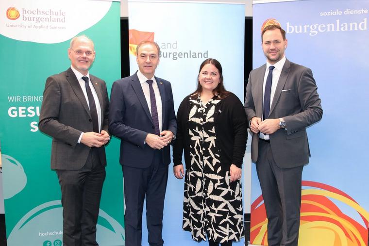 Franz Öller, (kaufmännischer Geschäftsführer Gesundheit Burgenland) erklärte: „Unsere Anstellungen garantieren nicht nur finanzielle Sicherheit, sondern stärken langfristig das burgenländische Gesundheitssystem. Dies wird besonders mit der Eröffnung neuer Einrichtungen wie dem Krankenhaus Oberwart spürbar.“ Das Burgenland plant, seine Vorreiterrolle mit dem Ausbau von Pflegestützpunkten und Hospizeinrichtungen, der Integration von ausländischen Pflegekräften (z.B. aus den Philippinen und Ungarn), sowie der Förderung betreuender Angehöriger (350 Personen sind aktuell angestellt, viele mit anschließender Heimhilfe-Ausbildung) weiter zu stärken. Johannes Zsifkovits (Geschäftsführer Soziale Dienste Burgenland GmbH) hob hervor: „Unsere Projekte - von neuen Pflegeeinrichtungen bis hin zu mobilen Diensten - können nur mit ausreichend Pflegepersonal gelingen. Wir setzen auf eine Kombination aus Ausbildung, Anstellung und internationalen Kooperationen.“ Nadine Graf, Studiengangsleiterin Bachelor Gesundheits- und Krankenpflege, erklärte: „Pflege ist ein systemrelevanter Beruf, hinter dem eine hochqualifizierte Berufsgruppe steht - mit großer Verantwortung und hohenAnforderungen bereits in der Ausbildung. Die zusätzliche Möglichkeit der finanziellen Förderung unterstreicht die gesellschaftliche und politische Anerkennung. Durch solche Modelle wird die Pflegeausbildung nicht nur finanziell abgesichert, dies kann langfristig auch das Image der Pflegeberufe stärken. Die Rolle der Pflegenden und zukünftigen Professionist*innen als unverzichtbare Stütze des Gesundheitswesens wird damit aktivgewürdigt. An der Hochschule für Angewandte Wissenschaften Burgenland bieten wir dieses Modell seit 3 Jahren an.“ Landesrat Schneemann betonte abschließend: „Das Burgenland zeigt, dass Innovation und Weitsicht der Schlüssel zur Bewältigung der Pflegeherausforderungen sind. Mit dem Anstellungsmodell für Auszubildende setzt das Land einen österreichweiten Standard, um Versorgungssicherheit, Qualität und Attraktivität des Pflegeberufs zu gewährleisten.“
