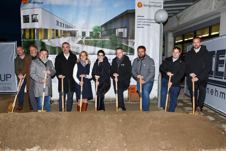 In der Keramikfachschule Stoob hat sich seit Dezember 2021 viel getan: Im Zuge der Gründung des Ceramico Kompetenzzentrums wurden nicht nur die Lehrgänge angepasst – um die Ausbildung stärker auf praktische Fähigkeiten auszurichten – und das Bildungs- und Ausbildungsangebot erweitert, sondern auch bauliche Maßnahmen zur Modernisierung des Schulstandorts in Stoob eingeleitet. Dazu gehörte der Neubau eines modernen Internats, das im Herbst 2023 fertiggestellt wurde. A 26. November 2024 erfolgte der Spatenstich für den Bau einer neuen, hochmodernen Werkstätte am CERAMICO Campus, die einen weiteren Meilenstein für die Entwicklung der Schule und deren Ausbildungsangebote markiert. „Der neue Campus ist vor allem auch auf eine praxisorientierte Facharbeiterausbildung ausgelegt, die den Nachwuchs optimal auf eine Karriere in den Bereichen Keramik, Fliesenverlegung und Ofenbau vorbereitet. Damit etabliert sich der CERAMICO als einzigartiges Kompetenzzentrum in Österreich. Bauaufsicht hat die Landesimmobilien Burgenland GmbH (LIB). Damit ist gewährleistet, dass die neuen Gebäude den hohen Ansprüchen der praktischen Fachausbildung gerecht werden“, betonte Infrastrukturlandesrat Heinrich Dorner, der gemeinsam mit Ceramico-Geschäftsführerin Anita Wolf, Bildungsdirektor Alfred Lehner, Projektleiter Georg Hafenscher (LIB), Bürgermeister Bruno Stutzenstein und Vertreter von an der Planung und am Bau beteiligten Unternehmen den Spatenstich vornahm.