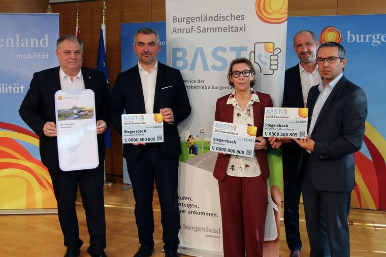 Die Einführung der Burgenländischen Anrufsammeltaxis (BAST) sei ein „Start in eine neue Ära des öffentlichen Verkehrs“, erklärte Verkehrslandesrat Heinrich Dorner bei einer Pressekonferenz am 24. Februar 2023. „Es wurde ein großer Meilenstein im öffentlichen Verkehr gesetzt. Wir haben gehalten, was versprochen wurde: Jede Burgenländerin und jeder Burgenländer bekommt ein Angebot für den öffentlichen Verkehr“, erklärte Dorner bei der Präsentation des neuen Modells für das Mittel- und Südburgenland gemeinsam mit Gesamtverkehrskoordinator Peter Zinggl, Wolfgang Werderits, Geschäftsführer Verkehrsbetriebe Burgenland (VBB), sowie dem Obmann der Leader Region „Mittelburgenland Plus“, Harald Horvath, und Margit Nöhrer, der Geschäftsführerin der Leader Region „Südburgenland Plus“. „Wir läuten mit dem BAST und mit dem Ineinandergreifen von Verkehrsangeboten ein neues Zeitalter ein. Mit diesem Gesamtsystem für das Burgenland gibt es in Hinkunft flächendeckend die Möglichkeit, rasch und unkompliziert mit einem öffentlichen Verkehrsmittel von A nach B zu kommen – auch aus entlegenen Gemeinden“ so Dorner. Fahren werden die Burgenländischen Sammeltaxis ab September 2023. 1.742 Haltepunkte wurden in den Gemeinden im Mittel- und Südburgenland festgelegt.