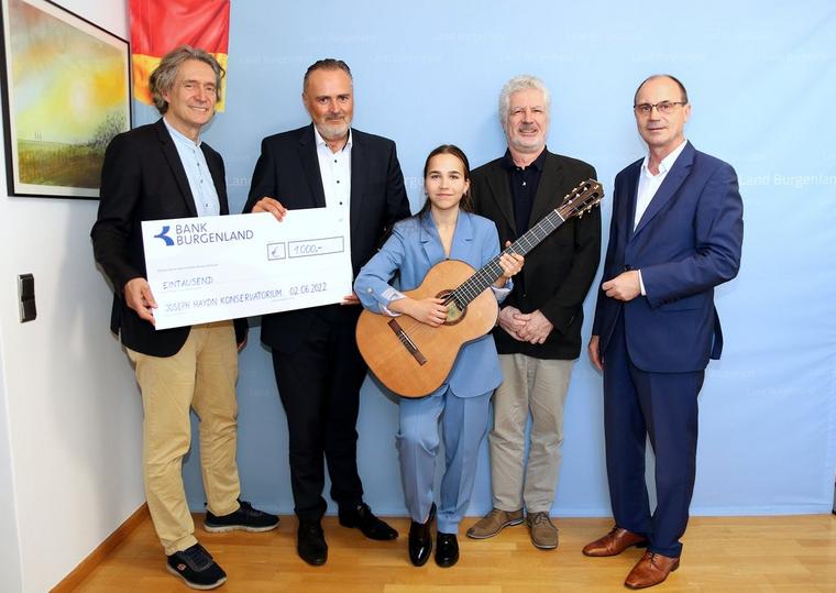 Im Rahmen ihres Besuches bei Landeshauptmann Hans Peter Doskozil übergaben Gerhard Krammer, Franz Steindl und Tibor Nemeth einen Scheck von 1000 Euro für die Ukrainehilfe. Das Geld wurde bei einem Orchesterkonzert im Haydn Konservatorium eingenommen und seitens des JHK auf 1000 Euro aufgestockt.