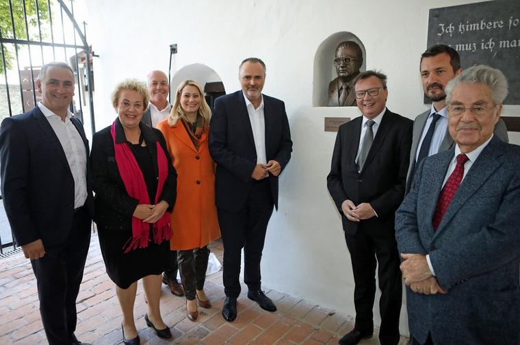 Das Land hatte damals Burg Schlaining erworben und hielt entgegen anfänglicher Bedenken am Standort fest. Der Landeshauptmann erinnerte dabei an das Wirken des 2019 verstorbenen früheren Kultur- und Soziallandesrats Gerald Mader: Dieser hatte mit schier unermüdlichem Einsatz finanzielle Mittel gesammelt, um mit der Renovierung der Burg und mit dem Aufbau des Friedenszentrums beginnen zu können. Im Gedenken an Mader und sein Engagement für die Friedensforschung wurde eine vom südburgenländischen Künstler Prof. Josef Lehner geschaffene Büste enthüllt, die sich im Durchgang zum Burginnenhof befindet.